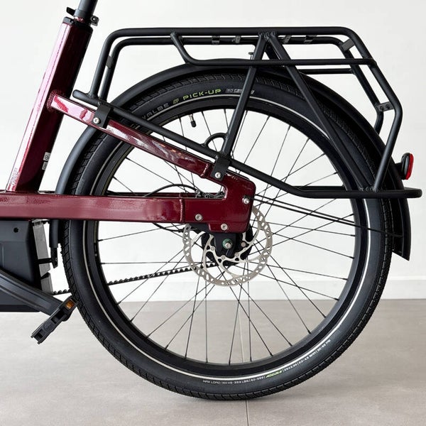Robuust, resitent, echt: de ultrastijve frameconstructie integreert een PowerTube-accu volledig in een ergonomisch ‘wave’design en integreert perfect in de bakfietslijn. 180 kg maximaal systeemgewicht en 42 kg maximale draagkracht voor de dragers spreekt voor zich.